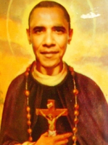 También hay una foto del pdte. Barack Obama, tomada en la sala oval de la Casa Blanca, en la cual han enfocado de modo que el rostro de Obama esté al centro del escudo de los EE. UU. El resultado es que la cara de Obama aparece rodeada de un halo (los bordes del escudo), y se lo ve como si fuese un santo.