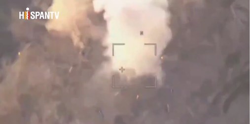 En la grabación se aprecia cómo el avión no tripulado realiza maniobras antes de golpear el tanque en la zona de la torreta, haciendo detonar, aparentemente, las granadas de humo en las lanzaderas del vehículo de procedencia norteamericana.