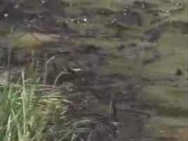 A lo largo del río se observa manchas negras y marrones que tienden a aglutinarse en las riveras. También se vio a pelícanos blancos manchados con el crudo.