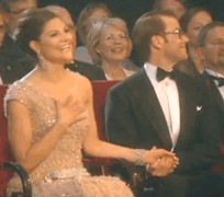 Durante la gala los novios permanecieron tomados de la mano en primera fila, radiantes y sonrientes, en especial Victoria, quien todo el tiempo sonreía y tarareaba y cerca del final subió con Daniel a cantar con los artistas y niños con banderas suecas.