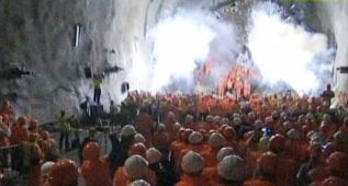 Con fuegos artificiales, trompetas y vivas, celebraron los suizos la culminación de los trabajos de perforación de las rocas para abrir el túnel de Saint Ghotard, el más largo del mundo, mientras la máquina perforadora irrumpía en el último tramo.