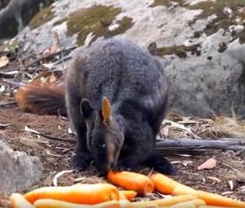 El ministro de medioambiente de Nueva Gales del Sur, Matt Kean, anunció que con helicópteros están arrojando miles de kilos de zanahorias y camotes con la esperanza de que sobrevivan, en especial los koalas, ualabíes y canguros.