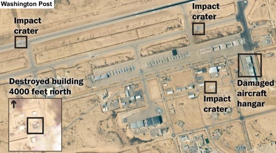 “Los analistas dijeron a The Washington Post que las imágenes eran consistentes con impactos directos en las bases en lugar de escombros de misiles interceptados”, reseña el informe.