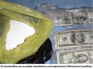 También en las elecciones municipales del 2006 dos candidatos apristas estuvieron relacionados con el narcotráfico. En el 2007 el principal asesor de la ministra de Justicia fue denunciado por defender narcos. En el 2009 se denunció la relación de la lideresa del PPC, Lourdes Flores, con César Cataño, investigado por lavado de activos, y asimismo, el principal asistente de la congresista humalista Nancy Obregón cayó con 140 kilos de droga. Además, es increíble que el congresista recién electo de Gana Perú y dirigente cocalero de Ayacucho, Walter Acha, reconozca que los cocaleros venden hoja de coca a “coqueras o tronqueras” ya que compran la sobreproducción a mejor precio, añadiendo desvergonzadamente que “no se puede negar que esto debe ir al narcotráfico”.