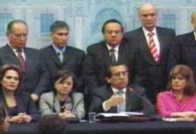 Por todo ello, por el Perú que ya ha dado mucho para recibir muy poco y por la memoria sin mancha de Haya de la Torre, cuyo nombre jamás se vió involucrado con esta clase de indecencias que avergüenzan al país ante el mundo, nos unimos todos los apristas que luchamos desde hace más de veinte años para exigir, como lo hicimos antes, la renuncia de Alan García y Jorge del Castillo, no solamente a la Presidencia de la República y a la Presidencia del Consejo de Ministros, respectivamente, sino también al APRA, para dejar en libertad a un partido al que tienen secuestrado y al que han traicionado con sus conductas indignas que constituyen una imprecación, una blasfemia, una execración a su propósitos, que son y han sido siempre la redención de la patria empezando por los que menos tienen ¡Que se vayan todos!