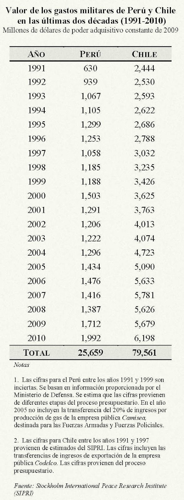 Para decepción de sirvientes y alcahuetes peruanos que hablan bien de sus patrones (los ladrones chilenos), las cifras demuestran que Chile sigue comprando armas para conservar los territorios robados a Bolivia y Perú y para robar más.