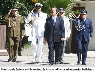 En este contexto, es muy preocupante la postura belicista chilena. El pasado día 30, como respuesta a una decisión boliviana de acusar a Chile por el tema marítimo durante la próxima Asamblea General de la OEA —el próximo martes 7 en San Salvador— el ministro de Defensa y canciller (s), Andrés Allamand, aduciendo que los tratados limítrofes vigentes —de 1904— deben respetarse, no tuvo reparos en advertir que su país “tiene F.F AA. prestigiadas, profesionales y preparadas, que están en condiciones de hacer respetar los tratados internacionales y de cautelar adecuadamente la soberanía y la integridad territorial de Chile”, interpretado en Bolivia como el alzamiento de “banderas de nuevas agresiones”.