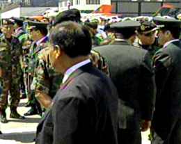 Una escena vergonzosa ocurrió ayer al mediodía. Llegaba el ataúd con el cuerpo del suboficial Vilca. Tras su breve paso, antes de la salida del féretro de la base aérea, don Dionisio Vilca, padre del fallecido, se acercó a los periodistas con ánimo de declarar, pero inmediatamente un grupo de oficiales lo rodearon y lo llevaron a varios metros de los hombres de prensa mientras la gente de seguridad reforzaba el cordón frente a los periodistas para que no se atrevan a acercarse a don Dionisio.