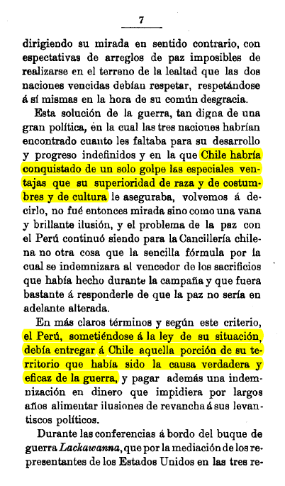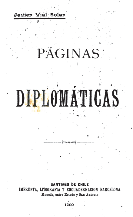 En su libro «Páginas Diplomáticas» el político y abogado Javier Vial Solar, exembajador de Chile en el Perú entre 1891 y 1894, también reconoció que los territorios de Tarapacá, Tacna y Arica fueron «la causa verdadera y eficaz de la guerra». Haga clic sobre las imágenes para ampliarlas en sendas ventanas.